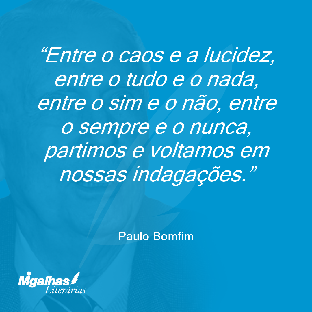 Entre o caos e a lucidez, entre o tudo e o nada, entre o sim e o não, entre o sempre e o nunca, partimos e voltamos em nossas indagações.
