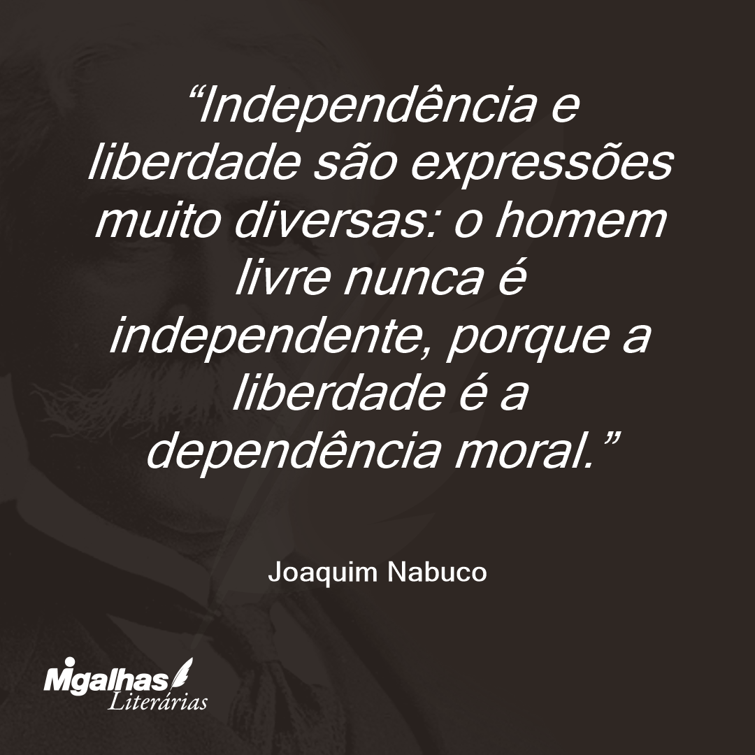 Independência e liberdade são expressões muito diversas: o homem livre nunca é independente, porque a liberdade é a dependência moral.