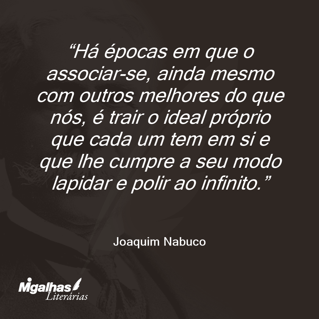 Há épocas em que o associar-se, ainda mesmo com outros melhores do que nós, é trair o ideal próprio que cada um tem em si e que lhe cumpre a seu modo lapidar e polir ao infinito.
