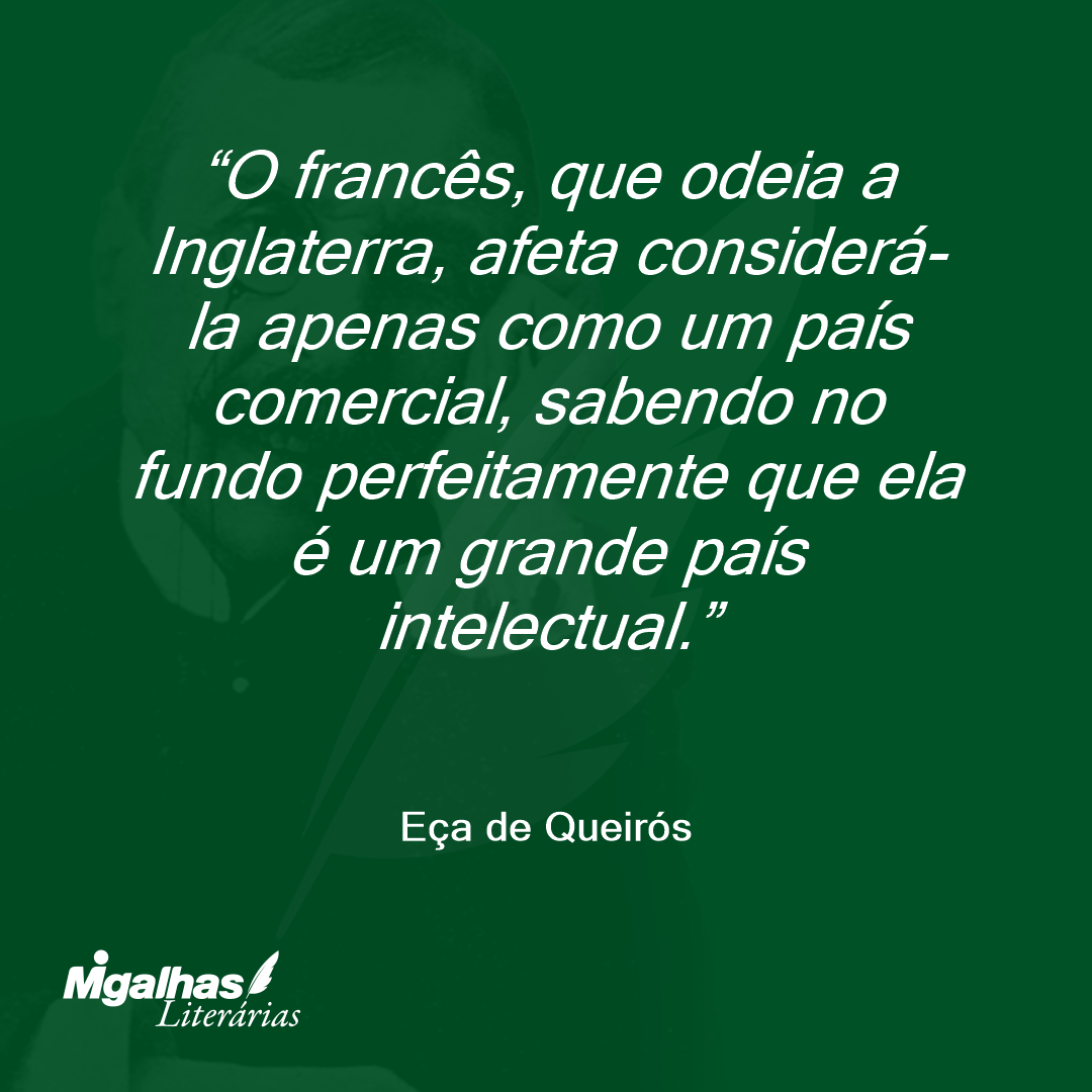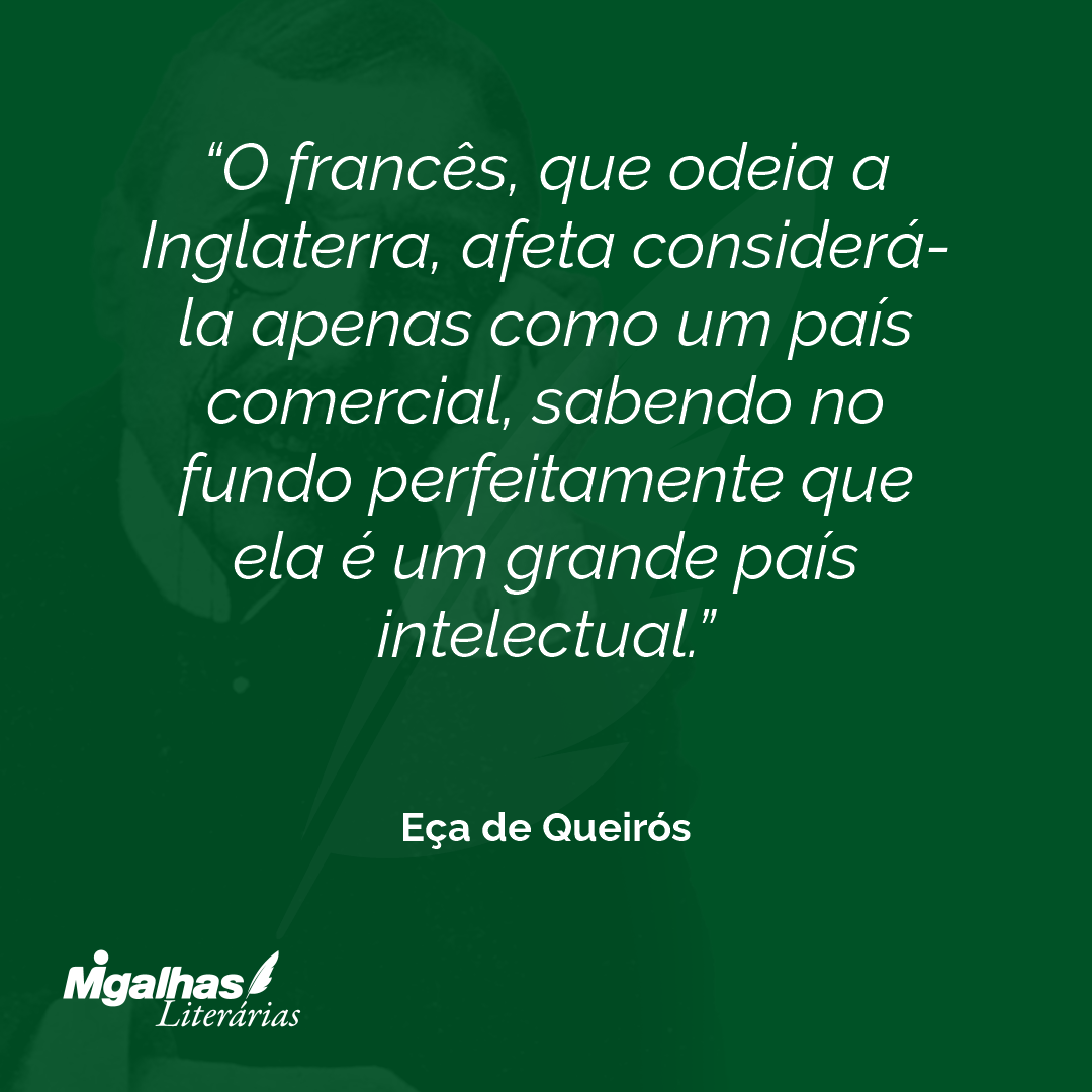 O francês, que odeia a Inglaterra, afeta considerá-la apenas como um país comercial, sabendo no fundo perfeitamente que ela é um grande país intelectual.