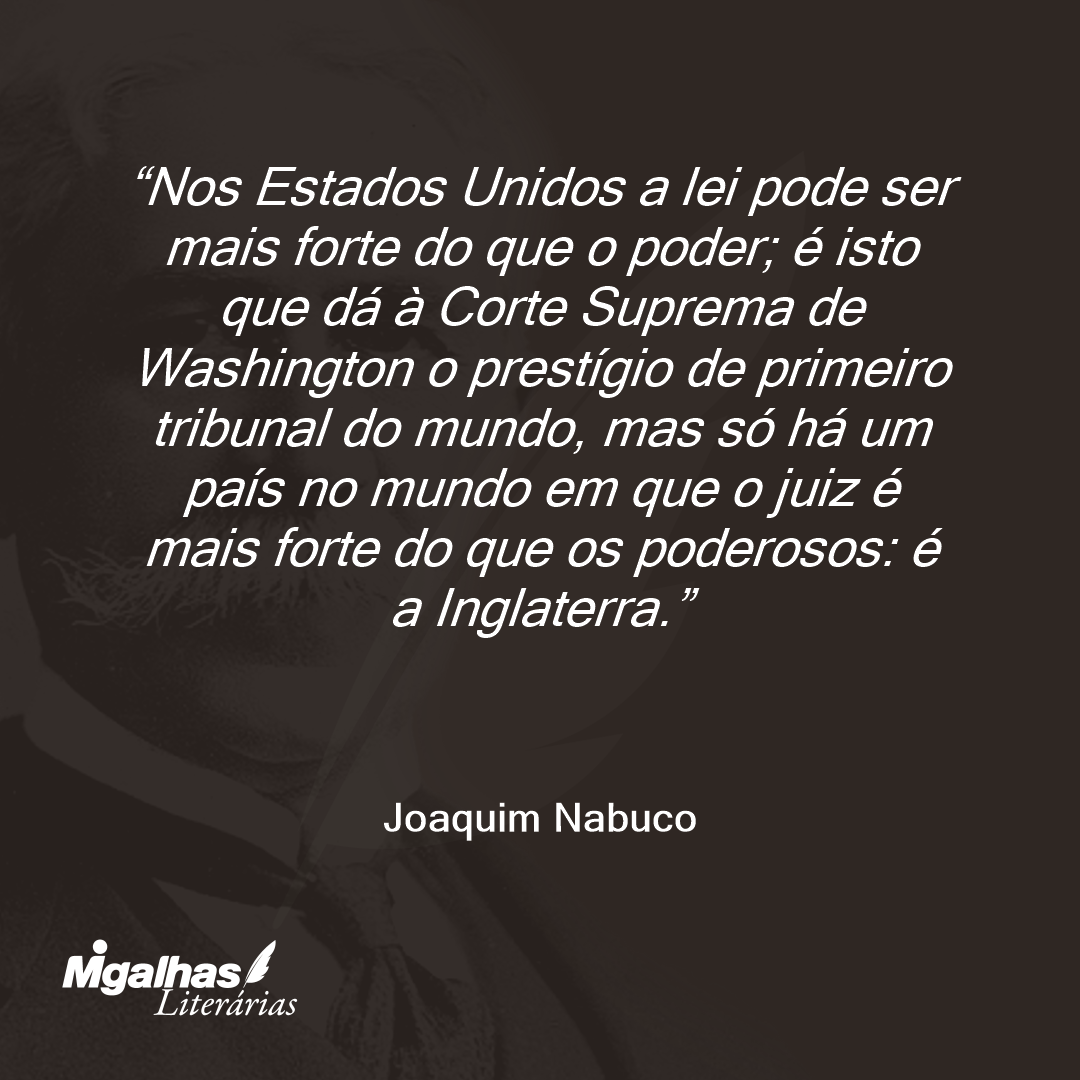 Nos Estados Unidos a lei pode ser mais forte do que o poder; é isto que dá à Corte Suprema de Washington o prestígio de primeiro tribunal do mundo, mas só há um país no mundo em que o juiz é mais forte do que os poderosos: é a Inglaterra.