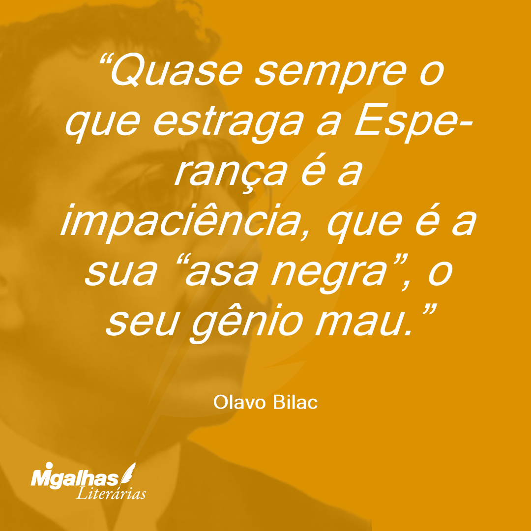 Quase sempre o que estraga a Espe-rança é a impaciência, que é a sua “asa negra”, o seu gênio mau.