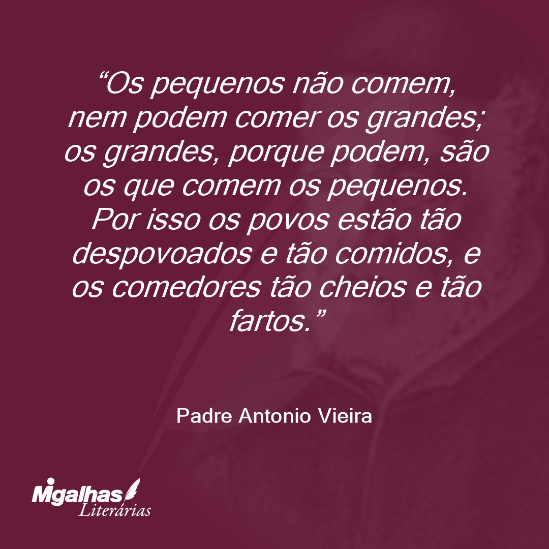 Os pequenos não comem, nem podem comer os grandes; os grandes, porque podem, são os que comem os pequenos. Por isso os povos estão tão despovoados e tão comidos, e os comedores tão cheios e tão fartos.