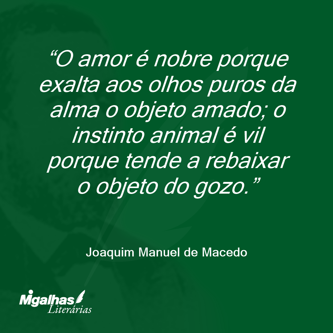 O amor é nobre porque exalta aos olhos puros da alma o objeto amado; o instinto animal é vil porque tende a rebaixar o objeto do gozo.