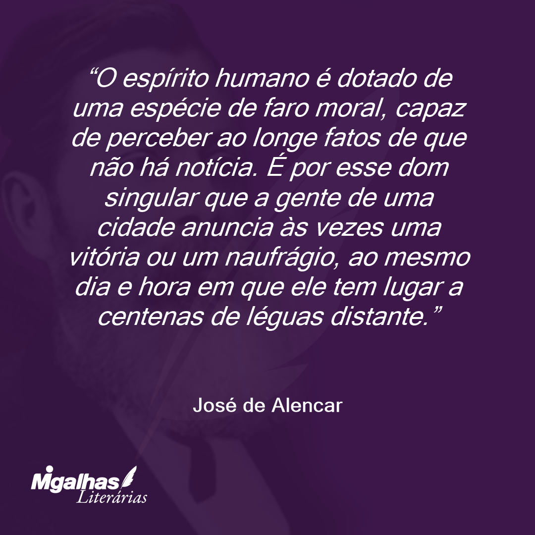 O espírito humano é dotado de uma espécie de faro moral, capaz de perceber ao longe fatos de que não há notícia. É por esse dom singular que a gente de uma cidade anuncia às vezes uma vitória ou um naufrágio, ao mesmo dia e hora em que ele tem lugar a centenas de léguas distante.