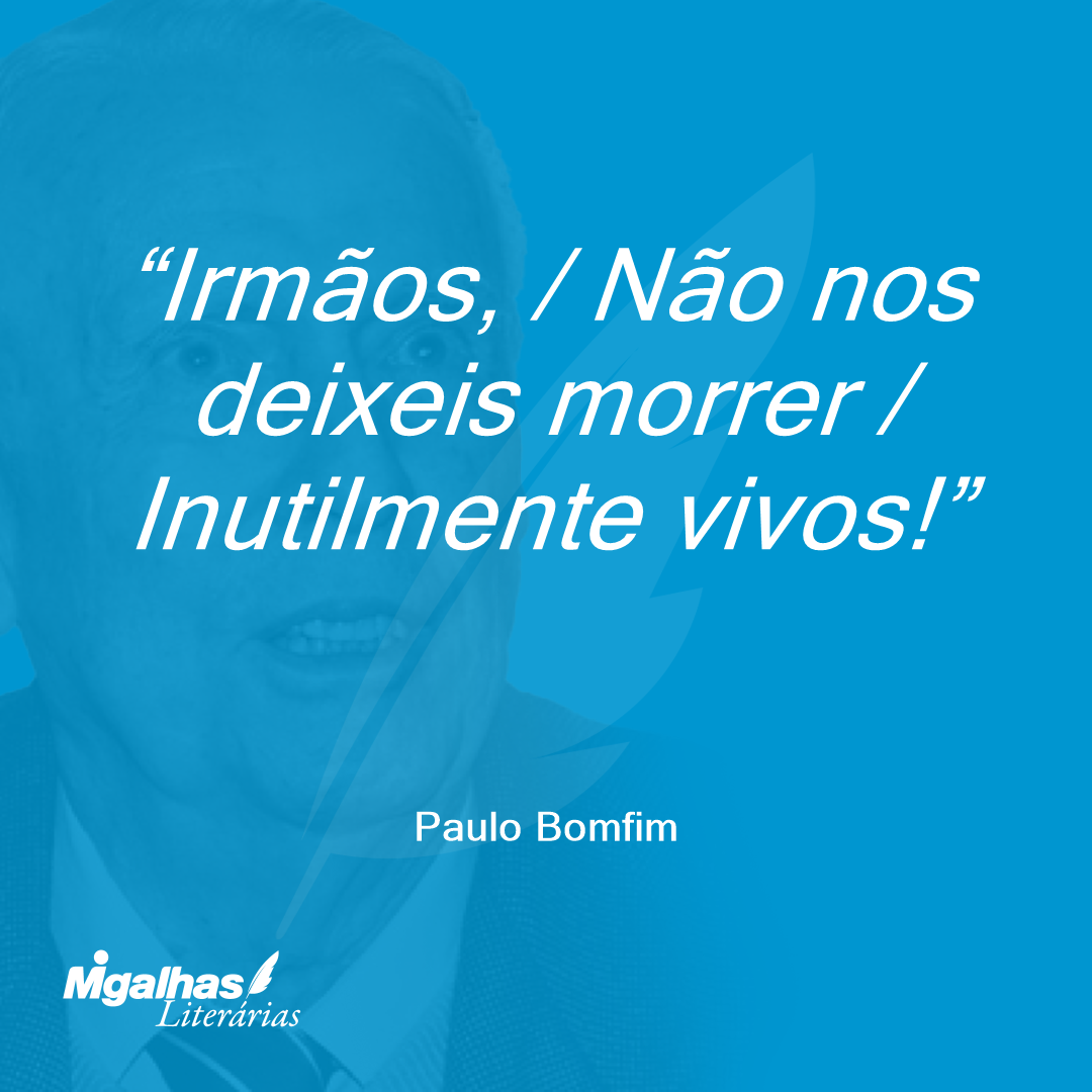 Irmãos, / Não nos deixeis morrer / Inutilmente vivos!