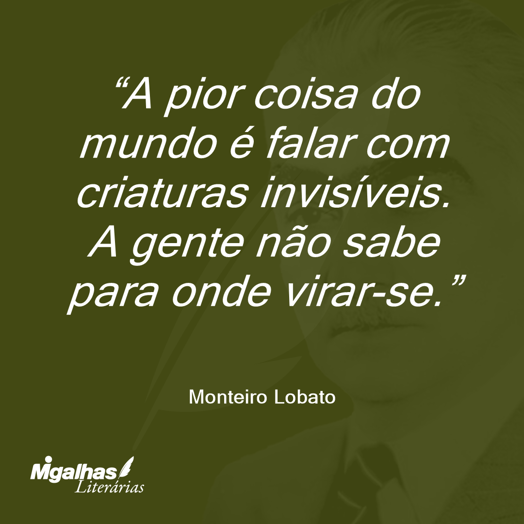 Monteiro Lobato | Trecho retirado do livro "Caçadas de Pedrinho e Hans Staden. Obras Completas de Monteiro Lobato, 2ª série, Literatura Infantil, Vol. III. São Paulo: Editora Brasiliense Ltda., 1956."