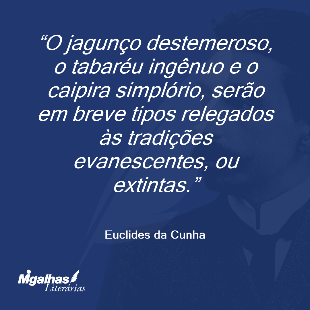 O jagunço destemeroso, o tabaréu ingênuo e o caipira simplório, serão em breve tipos relegados às tradições evanescentes, ou extintas.