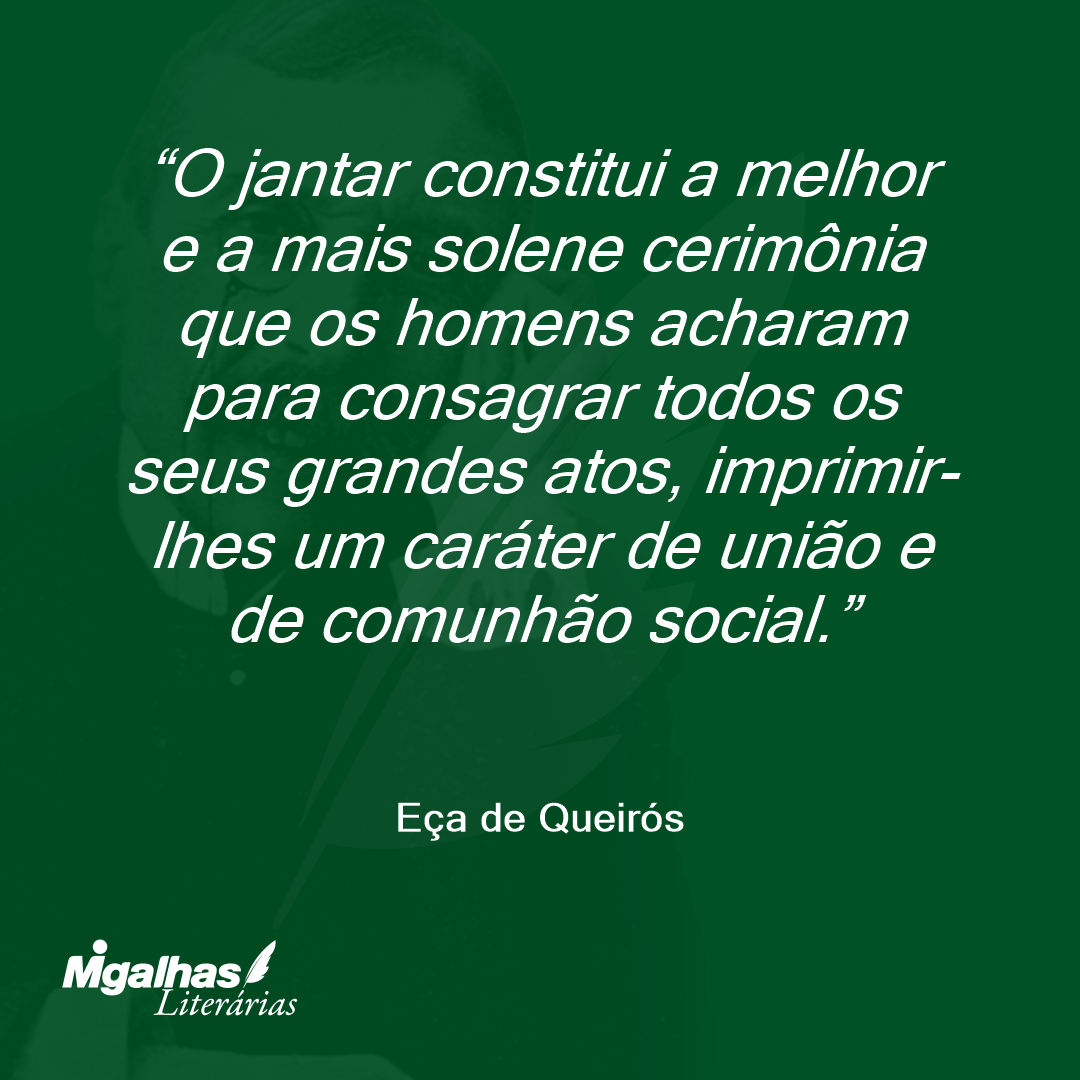 O jantar constitui a melhor e a mais solene cerimônia que os homens acharam para consagrar todos os seus grandes atos, imprimir-lhes um caráter de união e de comunhão social.