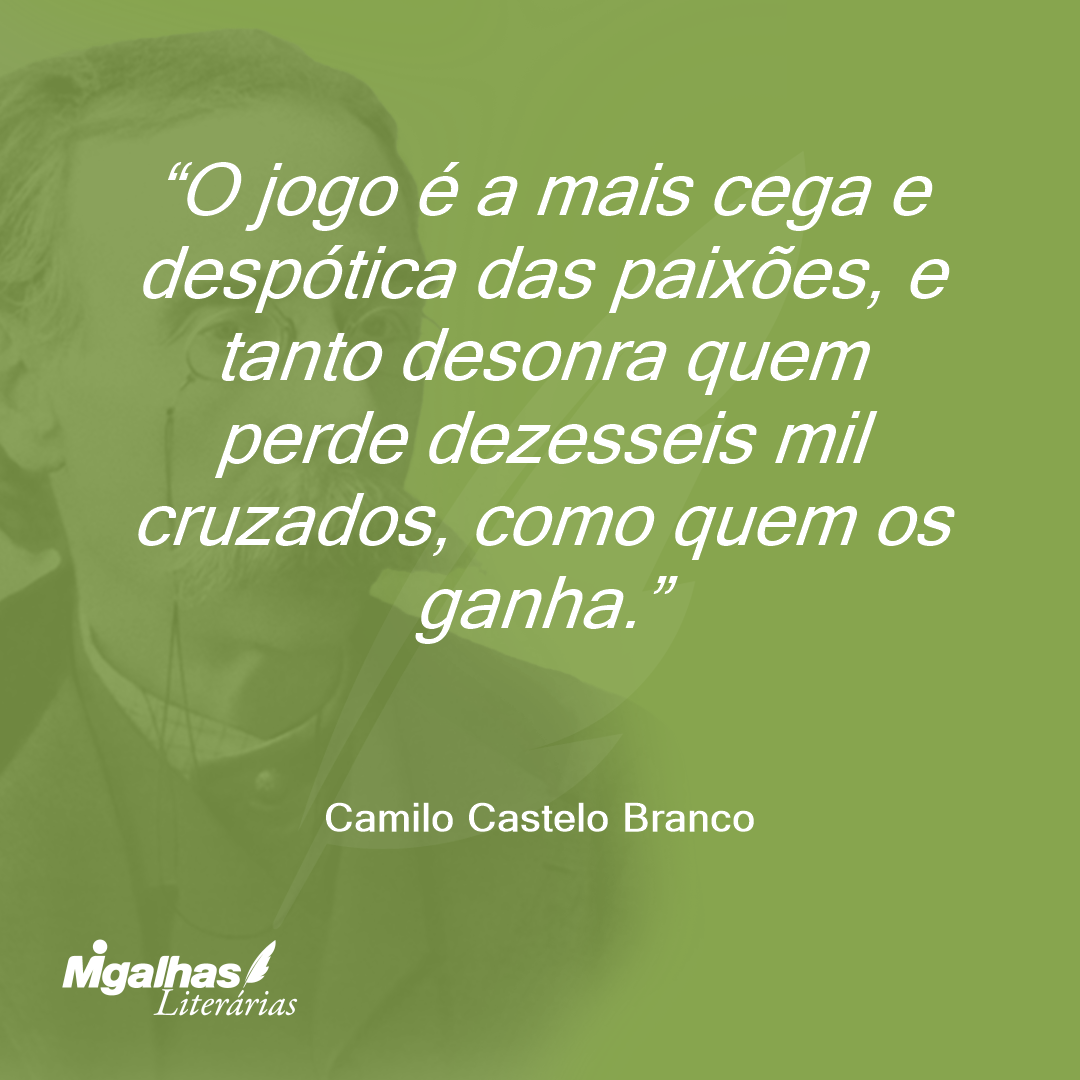 O jogo é a mais cega e despótica das paixões, e tanto desonra quem perde dezesseis mil cruzados, como quem os ganha.