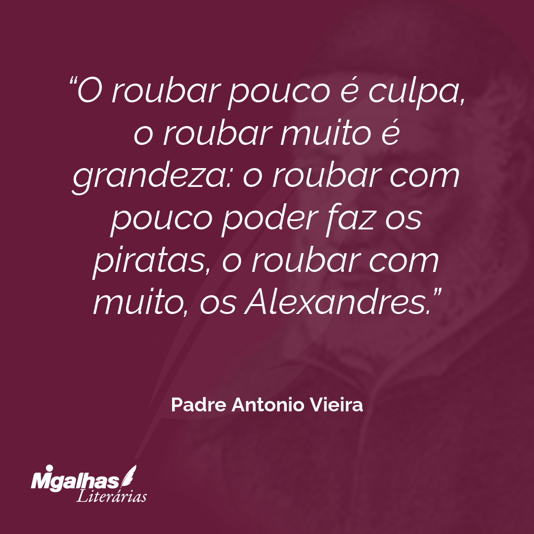 O roubar pouco é culpa, o roubar muito é grandeza: o roubar com pouco poder faz os piratas, o roubar com muito, os Alexandres.