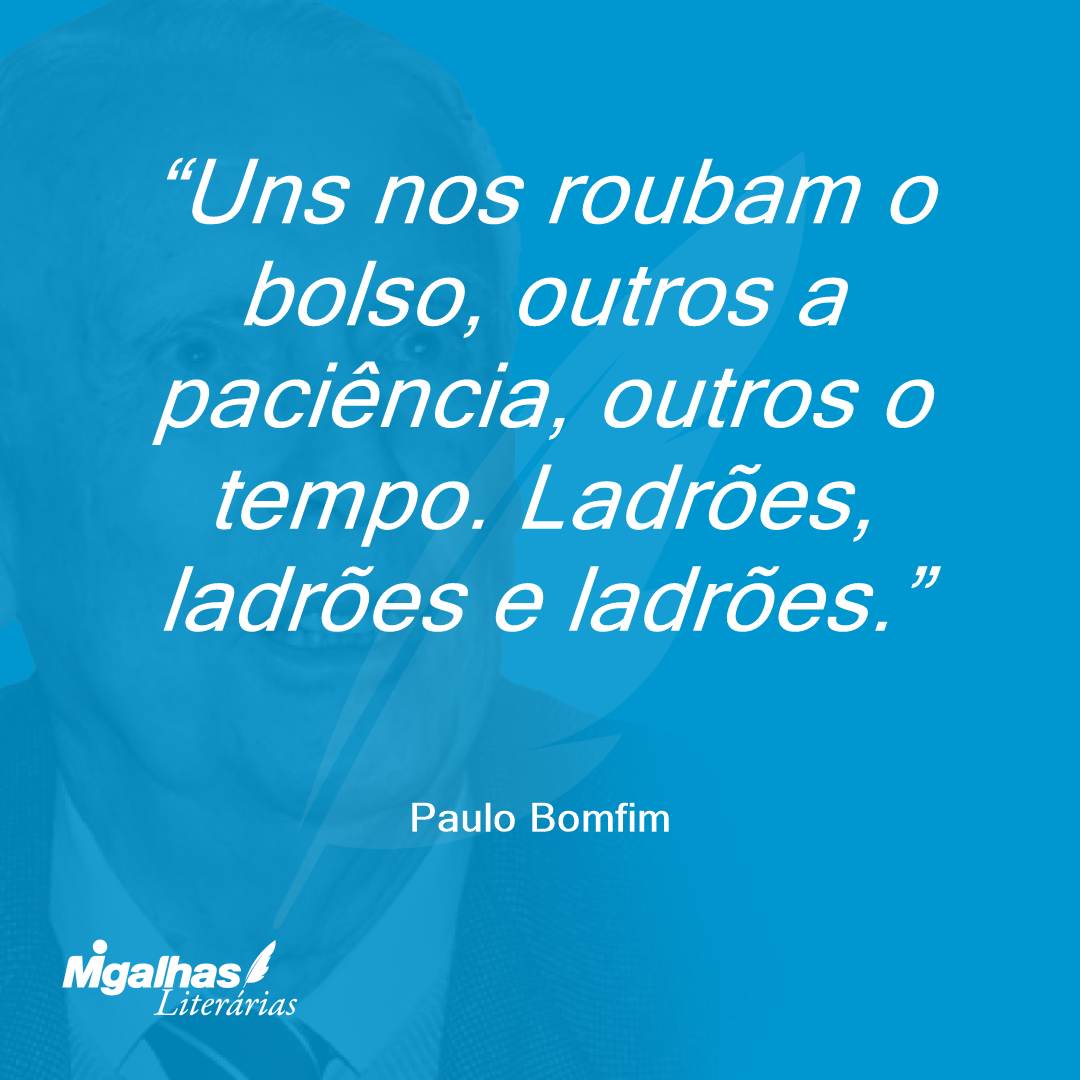 Uns nos roubam o bolso, outros a paciência, outros o tempo. Ladrões, ladrões e ladrões.