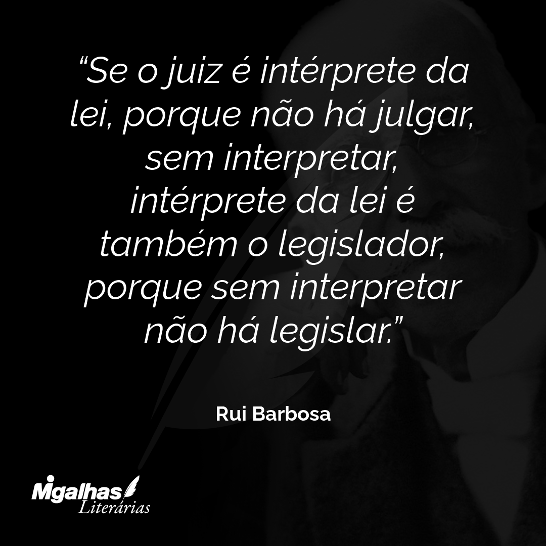 Se o juiz é intérprete da lei, porque não há julgar, sem interpretar, intérprete da lei é também o legislador, porque sem interpretar não há legislar.