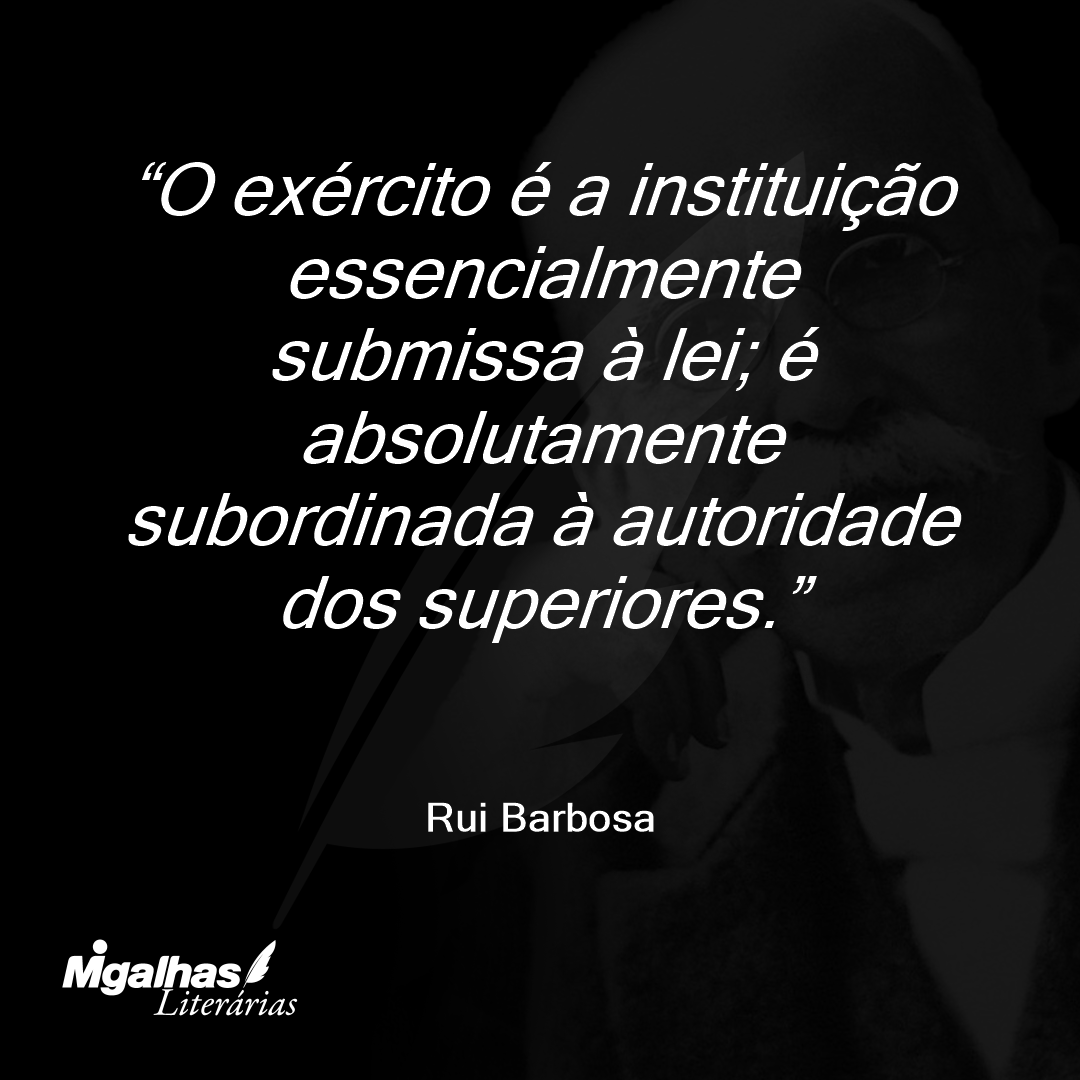 O exército é a instituição essencialmente submissa à lei; é absolutamente subordinada à autoridade dos superiores.