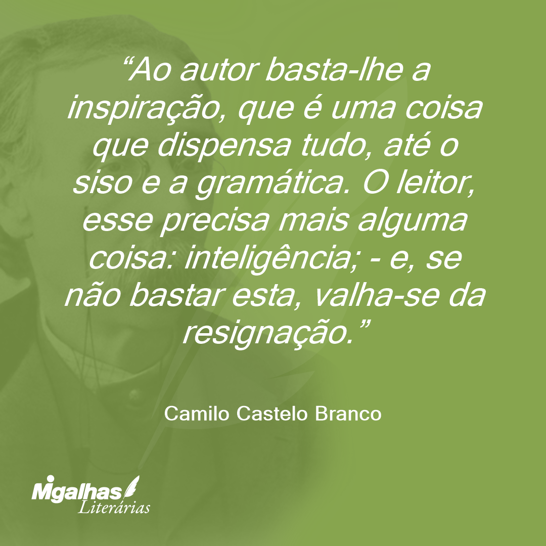 Ao autor basta-lhe a inspiração, que é uma coisa que dispensa tudo, até o siso e a gramática. O leitor, esse precisa mais alguma coisa: inteligência; - e, se não bastar esta, valha-se da resignação.