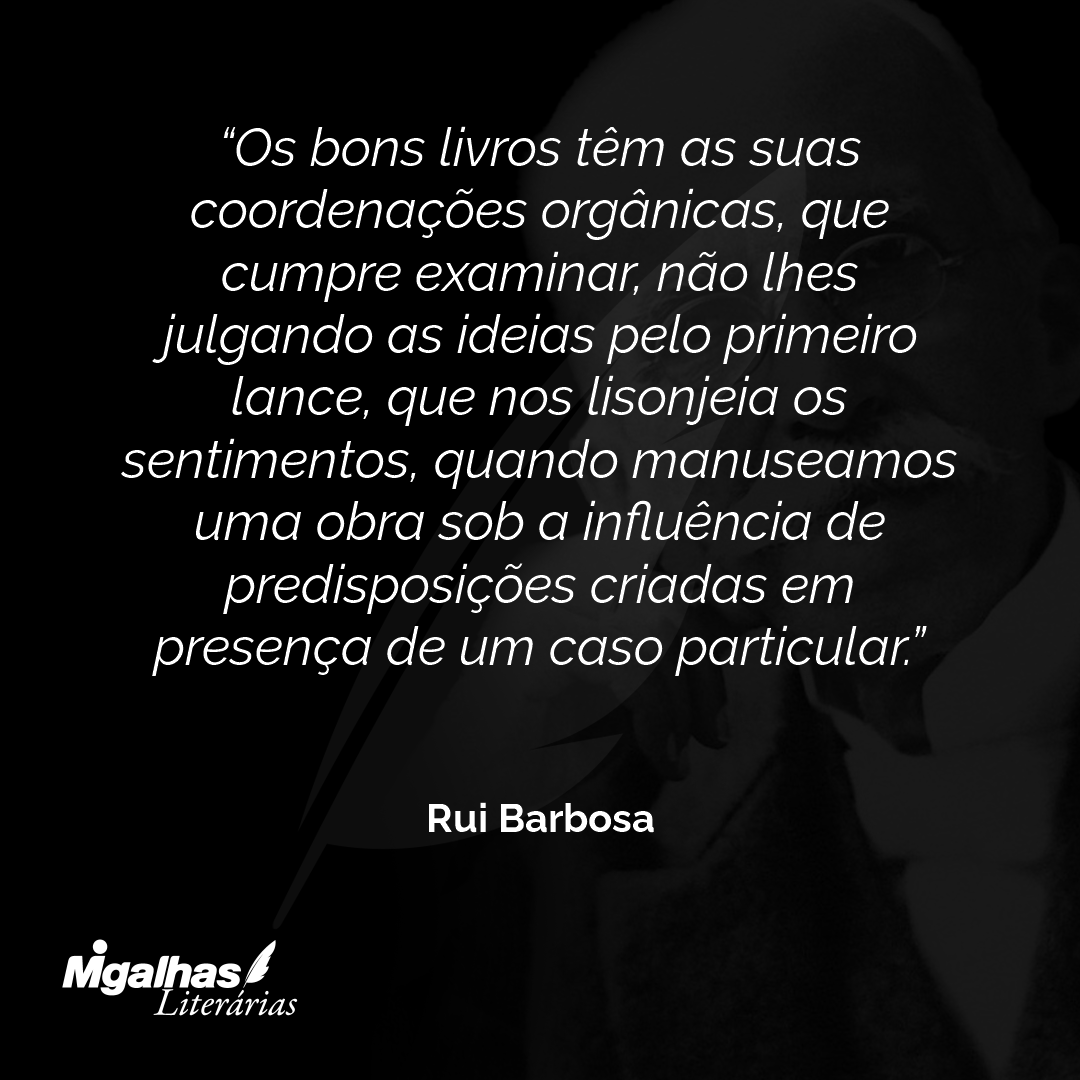 Os bons livros têm as suas coordenações orgânicas, que cumpre examinar, não lhes julgando as ideias pelo primeiro lance, que nos lisonjeia os sentimentos, quando manuseamos uma obra sob a influência de predisposições criadas em presença de um caso particular.