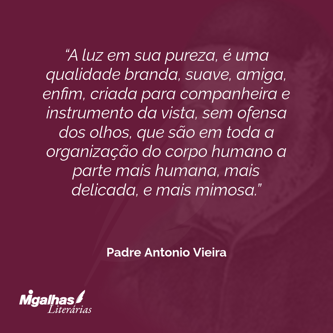 A luz em sua pureza, é uma qualidade branda, suave, amiga, enfim, criada para companheira e instrumento da vista, sem ofensa dos olhos, que são em toda a organização do corpo humano a parte mais humana, mais delicada, e mais mimosa.
