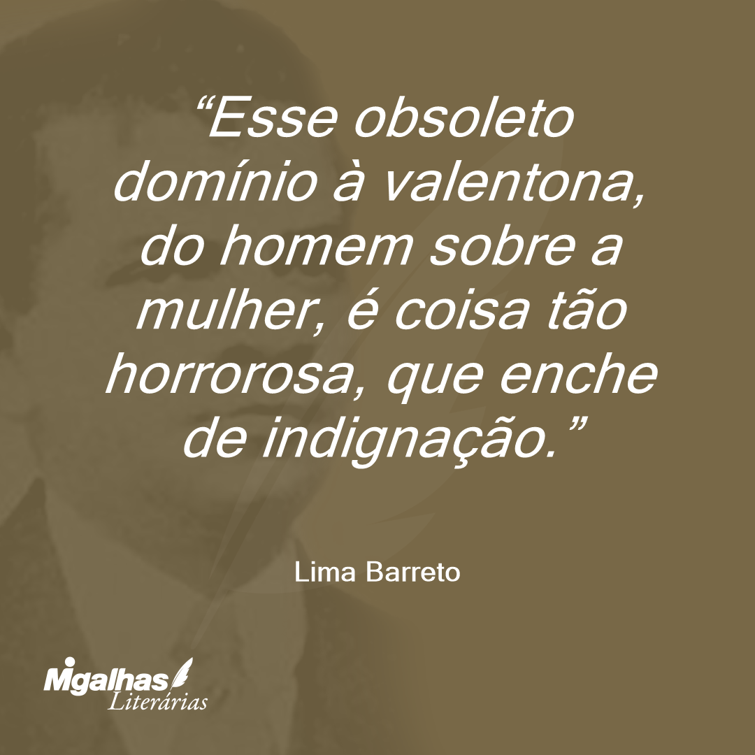 Esse obsoleto domínio à valentona, do homem sobre a mulher, é coisa tão horrorosa, que enche de indignação.