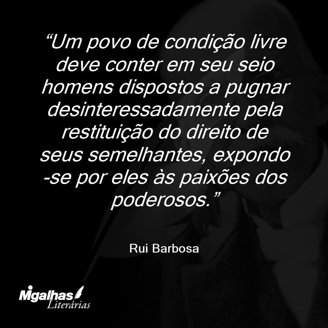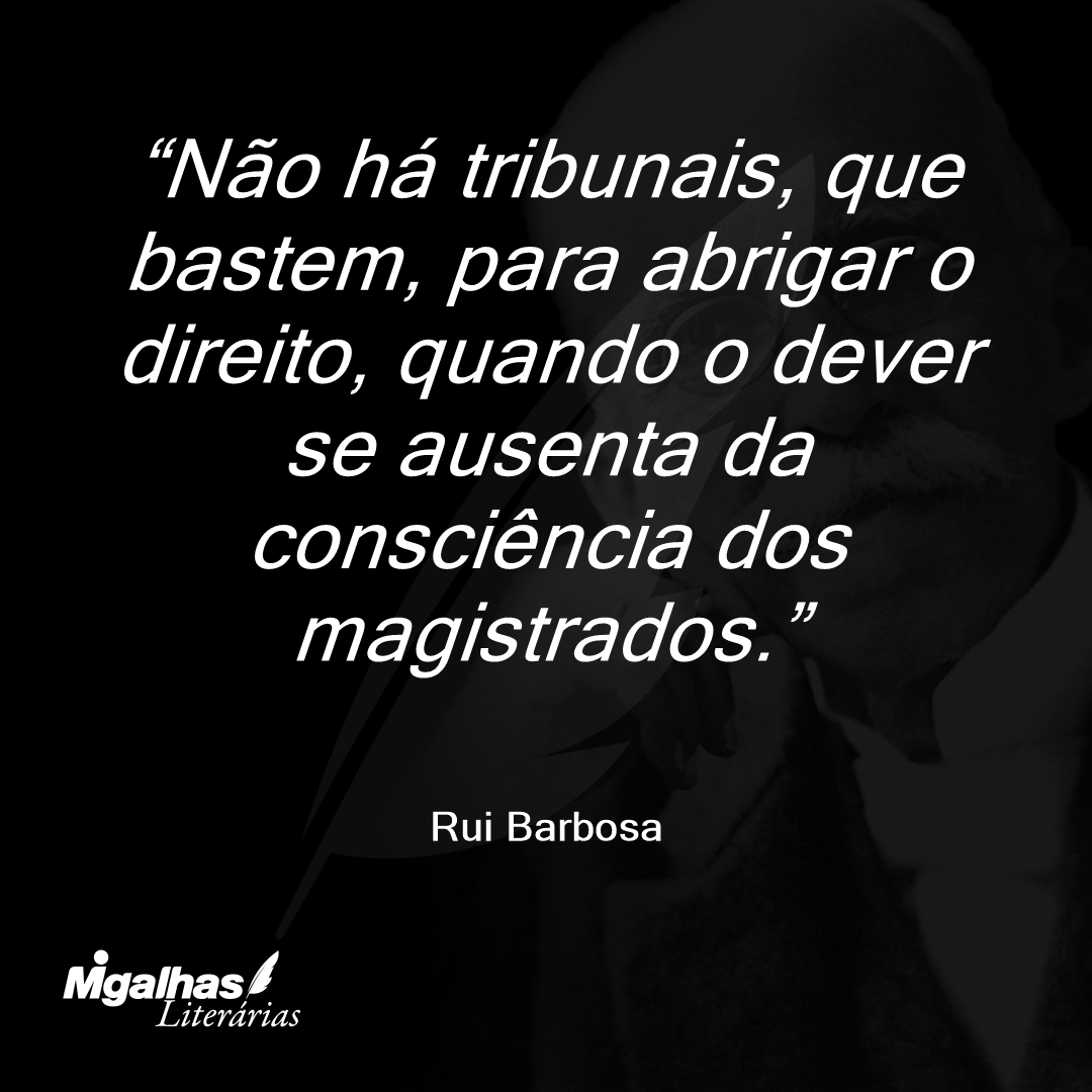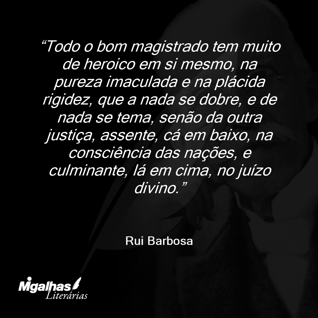 Todo o bom magistrado tem muito de heroico em si mesmo, na pureza imaculada e na plácida rigidez, que a nada se dobre, e de nada se tema, senão da outra justiça, assente, cá em baixo, na consciência das nações, e culminante, lá em cima, no juízo divino.