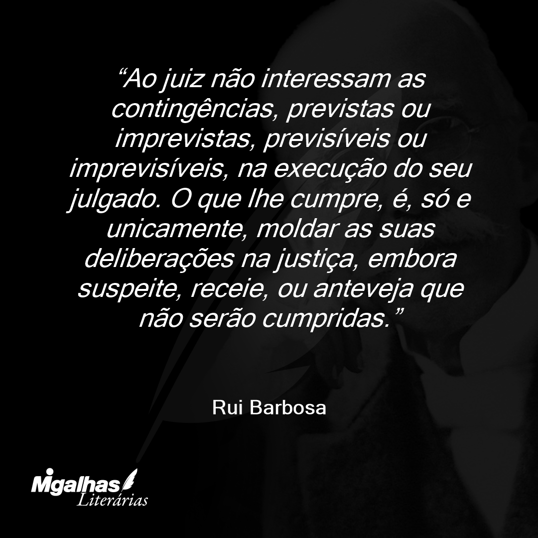 Ao juiz não interessam as contingências, previstas ou imprevistas, previsíveis ou imprevisíveis, na execução do seu julgado. O que lhe cumpre, é, só e unicamente, moldar as suas deliberações na justiça, embora suspeite, receie, ou anteveja que não serão cumpridas.