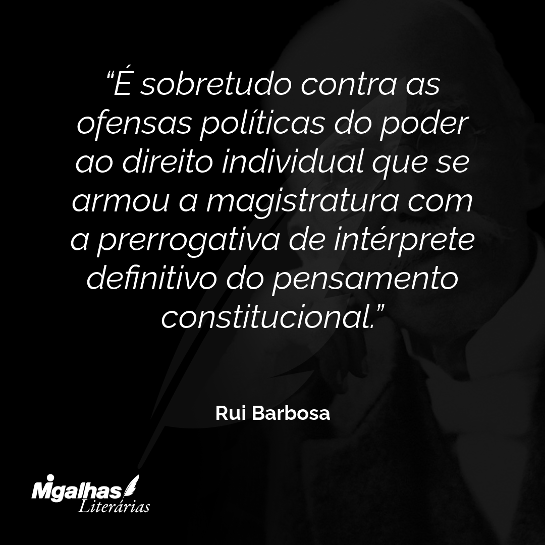 É sobretudo contra as ofensas políticas do poder ao direito individual que se armou a magistratura com a prerrogativa de intérprete definitivo do pensamento constitucional.