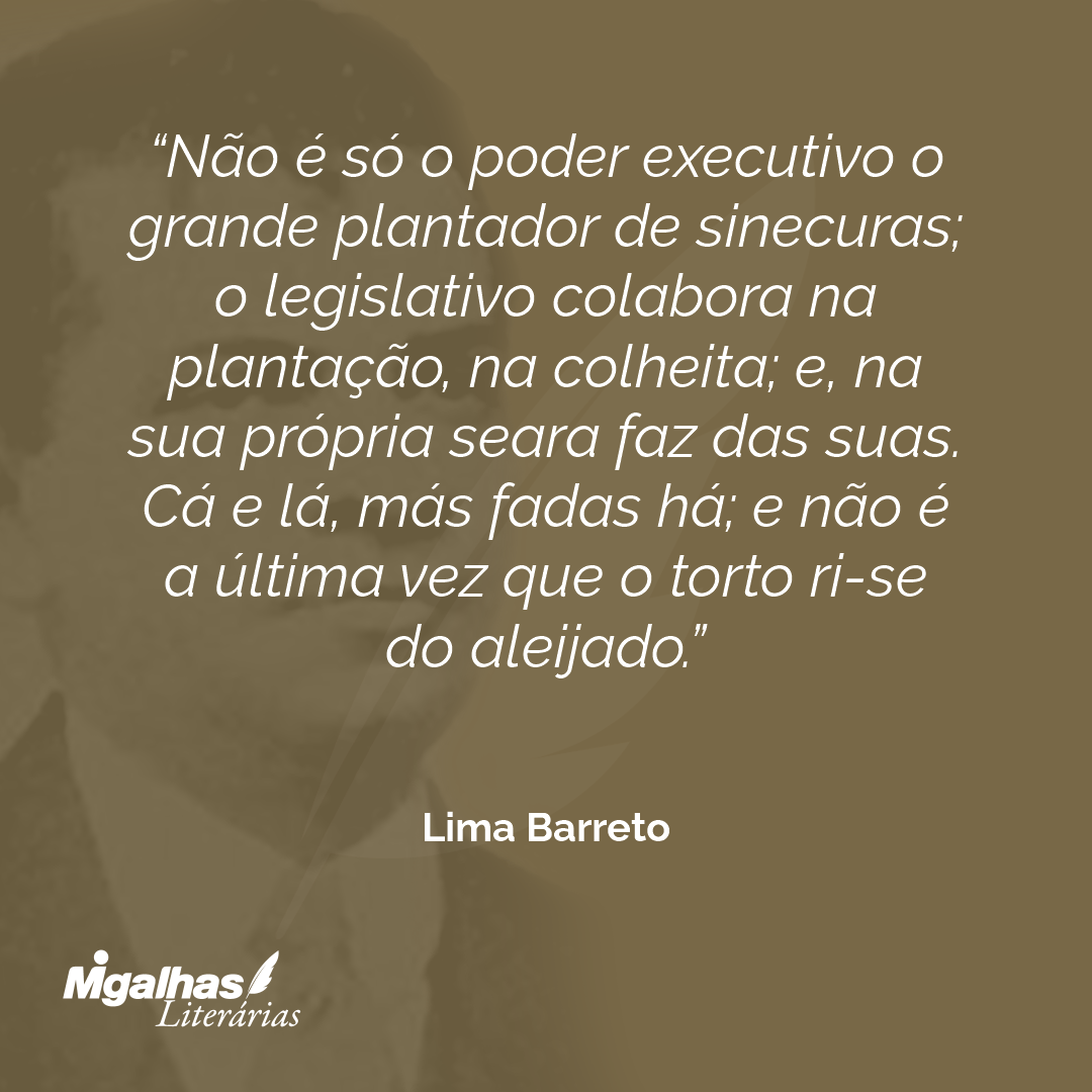 Não é só o poder executivo o grande plantador de sinecuras; o legislativo colabora na plantação, na colheita; e, na sua própria seara faz das suas. Cá e lá, más fadas há; e não é a última vez que o torto ri-se do aleijado.