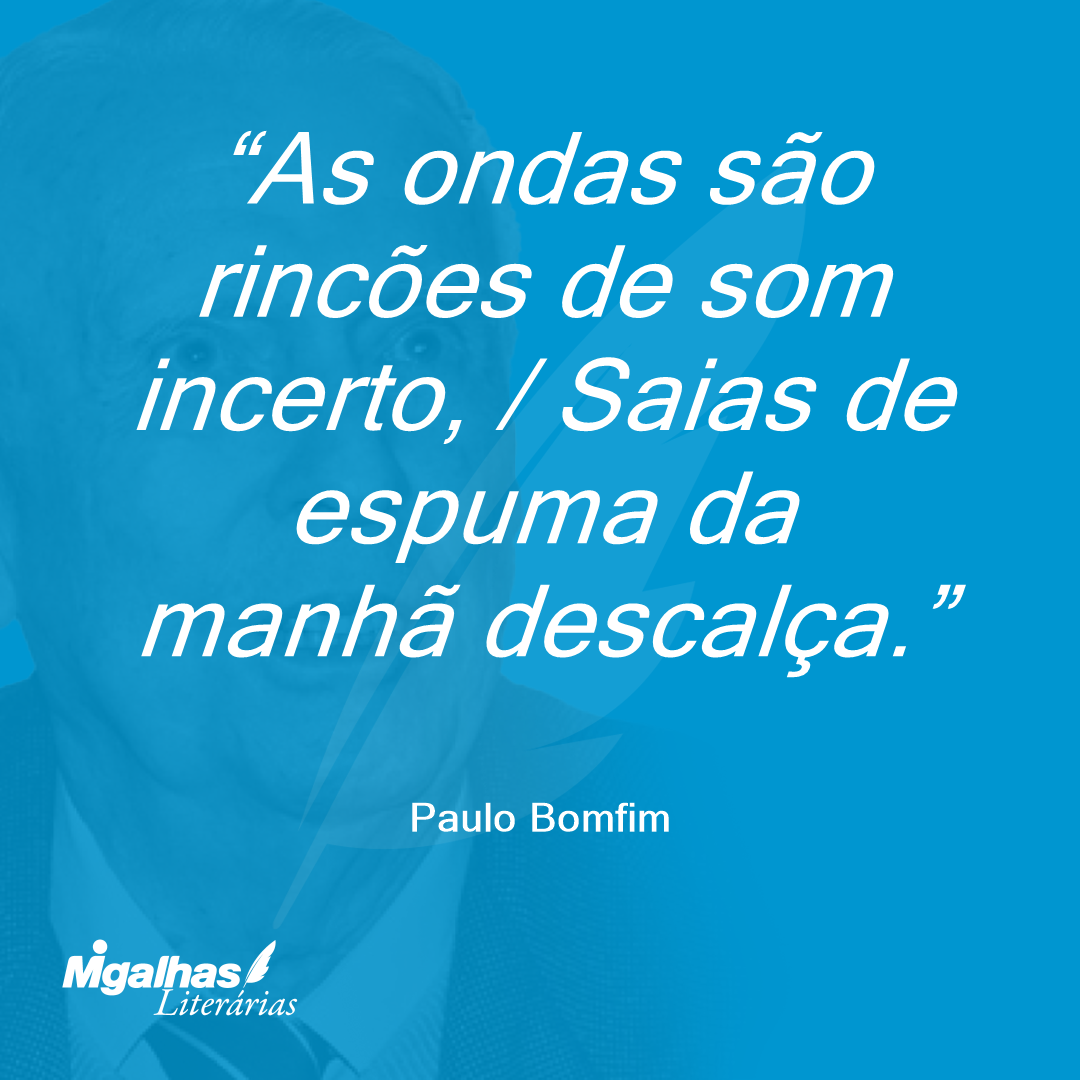 As ondas são rincões de som incerto, / Saias de espuma da manhã descalça.