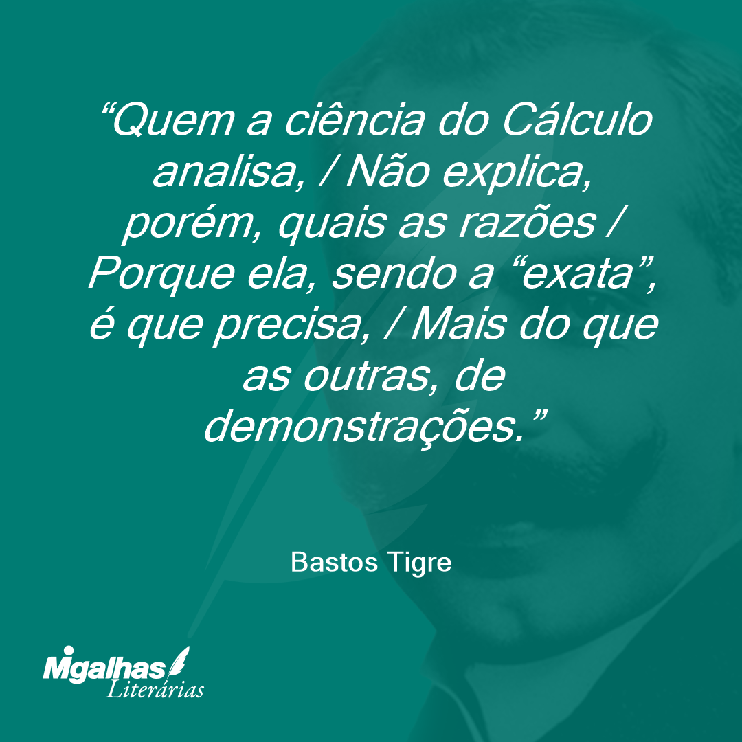 Quem a ciência do Cálculo analisa, / Não explica, porém, quais as razões / Porque ela, sendo a “exata”, é que precisa, / Mais do que as outras, de demonstrações.