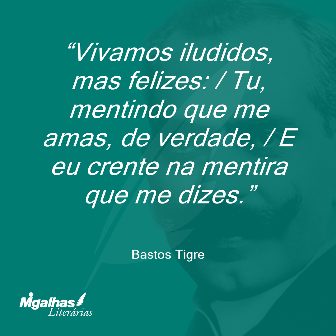 Vivamos iludidos, mas felizes: / Tu, mentindo que me amas, de verdade, / E eu crente na mentira que me dizes.
