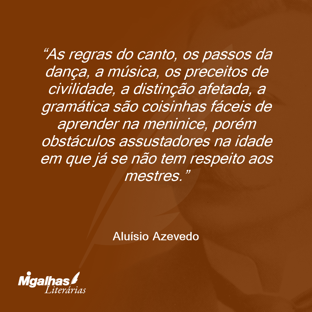 As regras do canto, os passos da dança, a música, os preceitos de civilidade, a distinção afetada, a gramática são coisinhas fáceis de aprender na meninice, porém obstáculos assustadores na idade em que já se não tem respeito aos mestres.