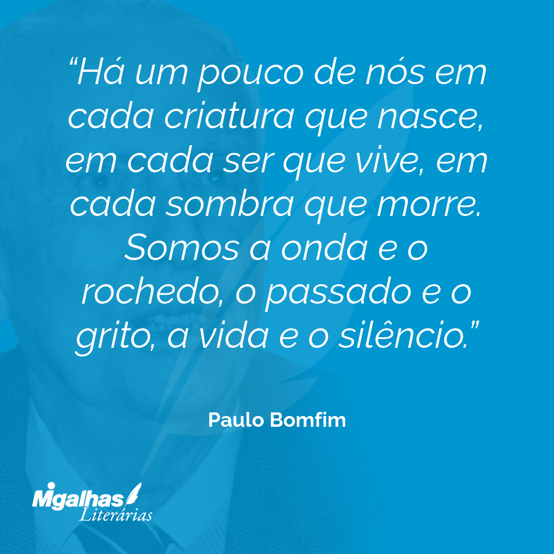 Há um pouco de nós em cada criatura que nasce, em cada ser que vive, em cada sombra que morre. Somos a onda e o rochedo, o passado e o grito, a vida e o silêncio.