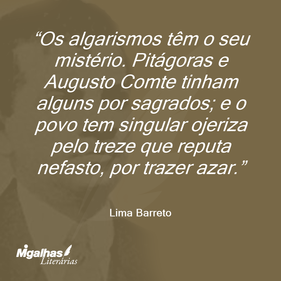 Os algarismos têm o seu mistério. Pitágoras e Augusto Comte tinham alguns por sagrados; e o povo tem singular ojeriza pelo treze que reputa nefasto, por trazer azar.