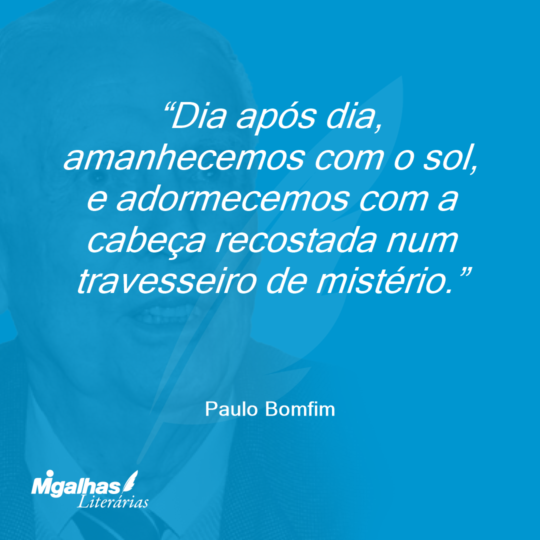 Dia após dia, amanhecemos com o sol, e adormecemos com a cabeça recostada num travesseiro de mistério.