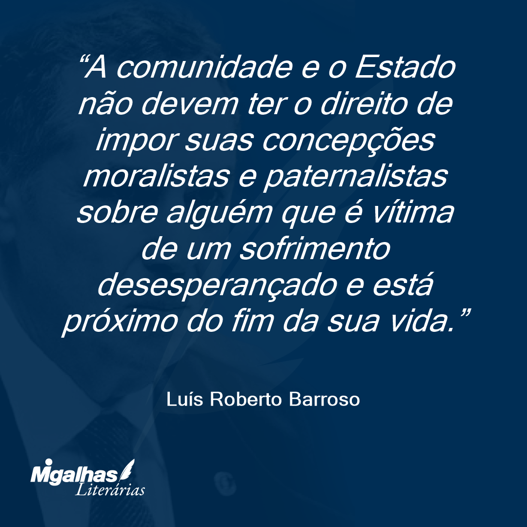 A comunidade e o Estado não devem ter o direito de impor suas concepções moralistas e paternalistas sobre alguém que é vítima de um sofrimento desesperançado e está próximo do fim da sua vida.
