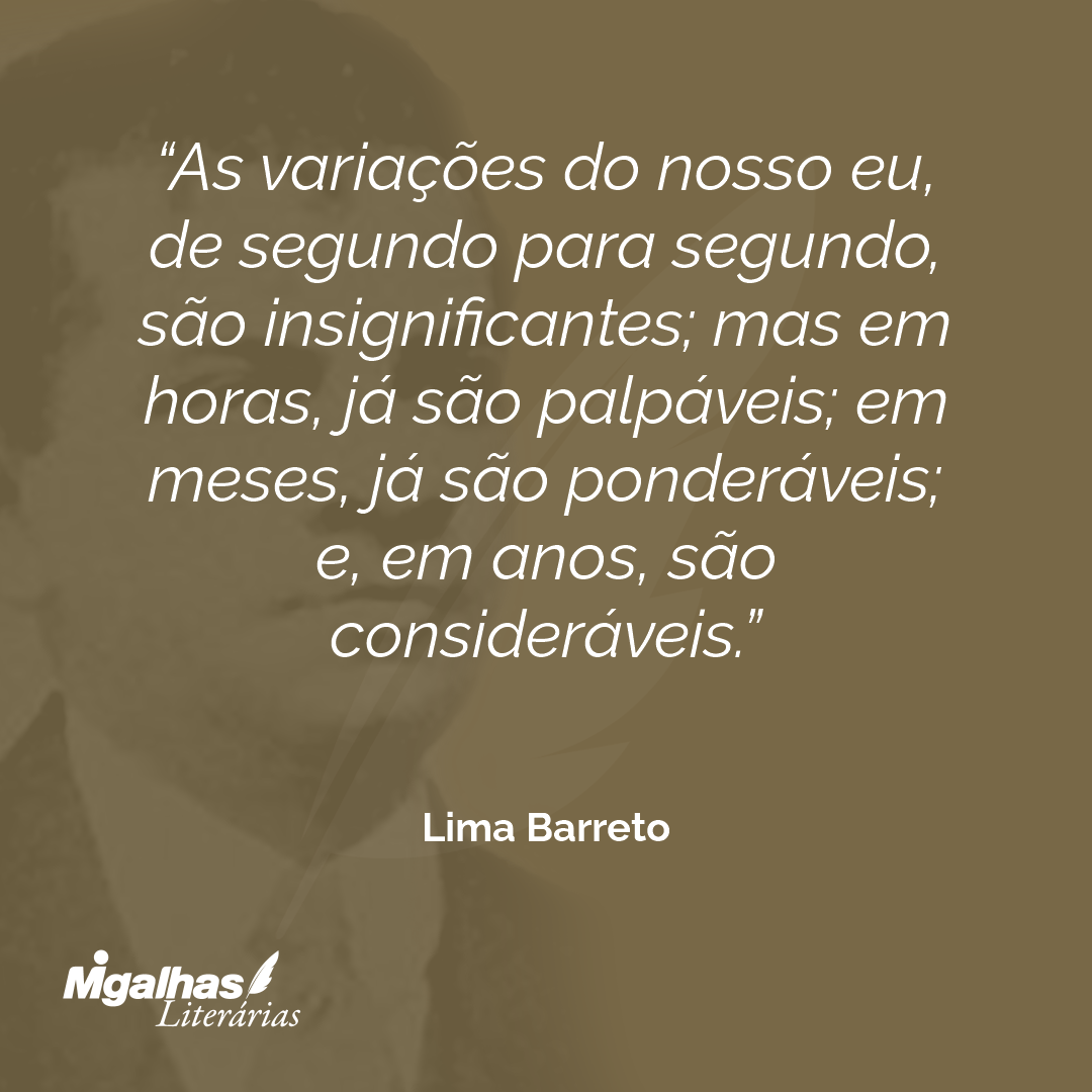 As variações do nosso eu, de segundo para segundo, são insignificantes; mas em horas, já são palpáveis; em meses, já são ponderáveis; e, em anos, são consideráveis.