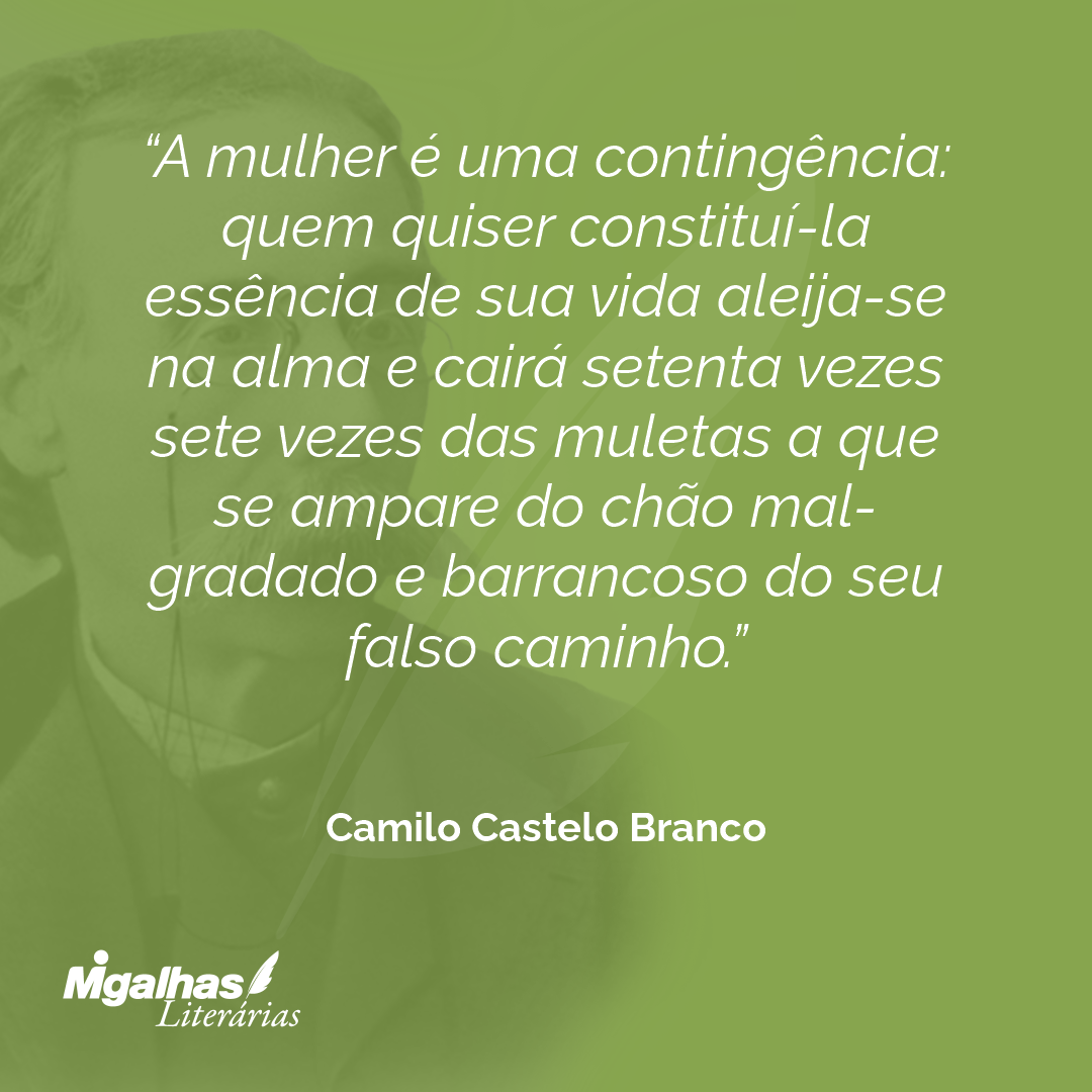 A mulher é uma contingência: quem quiser constituí-la essência de sua vida aleija-se na alma e cairá setenta vezes sete vezes das muletas a que se ampare do chão mal-gradado e barrancoso do seu falso caminho.