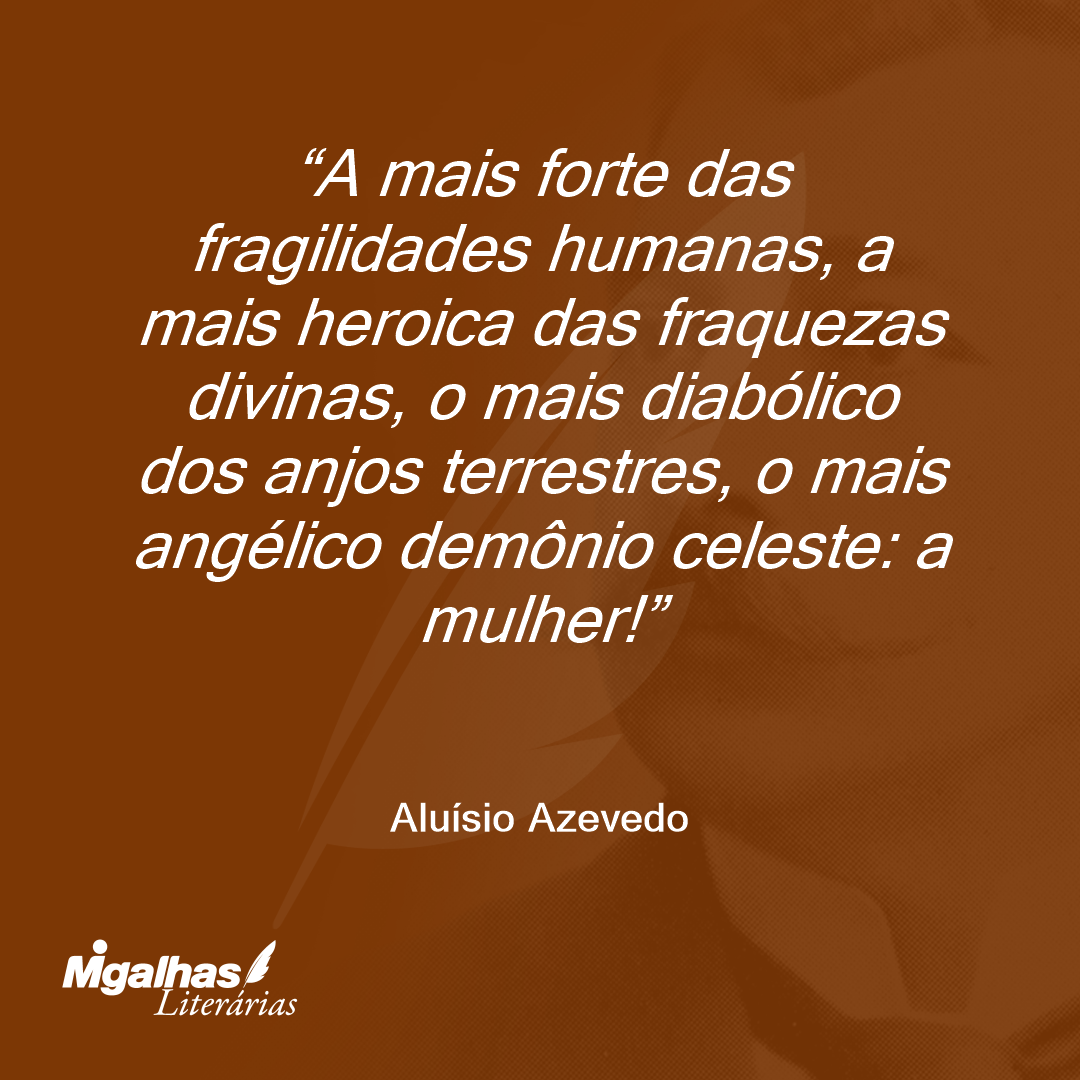 A mais forte das fragilidades humanas, a mais heroica das fraquezas divinas, o mais diabólico dos anjos terrestres, o mais angélico demônio celeste: a mulher!