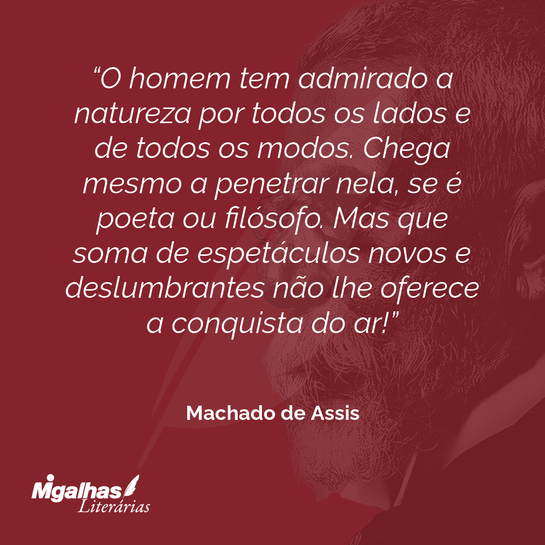 O homem tem admirado a natureza por todos os lados e de todos os modos. Chega mesmo a penetrar nela, se é poeta ou filósofo. Mas que soma de espetáculos novos e deslumbrantes não lhe oferece a conquista do ar!