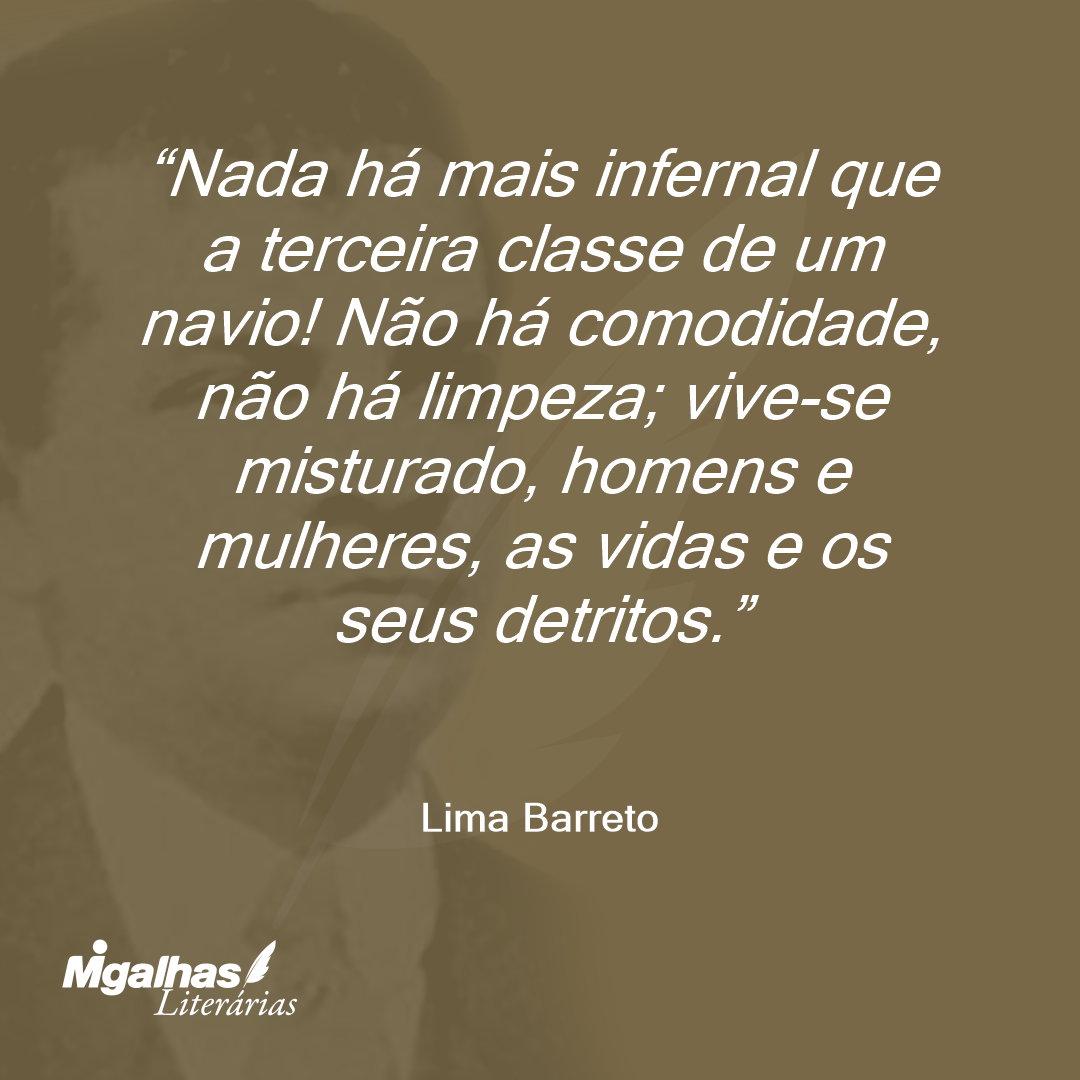 Nada há mais infernal que a terceira classe de um navio! Não há comodidade, não há limpeza; vive-se misturado, homens e mulheres, as vidas e os seus detritos.