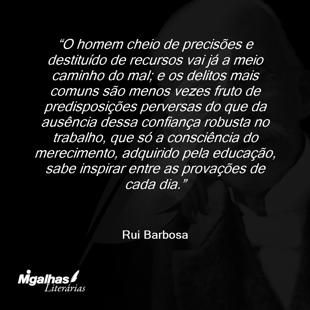 O homem cheio de precisões e destituído de recursos vai já a meio caminho do mal; e os delitos mais comuns são menos vezes fruto de predisposições perversas do que da ausência dessa confiança robusta no trabalho, que só a consciência do merecimento, adquirido pela educação, sabe inspirar entre as provações de cada dia.