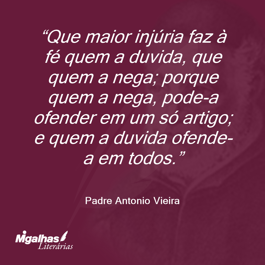 Que maior injúria faz à fé quem a duvida, que quem a nega; porque quem a nega, pode-a ofender em um só artigo; e quem a duvida ofende-a em todos.