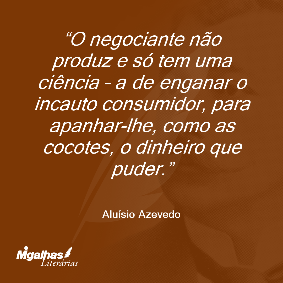 O negociante não produz e só tem uma ciência – a de enganar o incauto consumidor, para apanhar-lhe, como as cocotes, o dinheiro que puder.