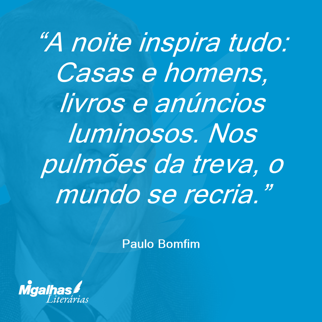 A noite inspira tudo: Casas e homens, livros e anúncios luminosos. Nos pulmões da treva, o mundo se recria.