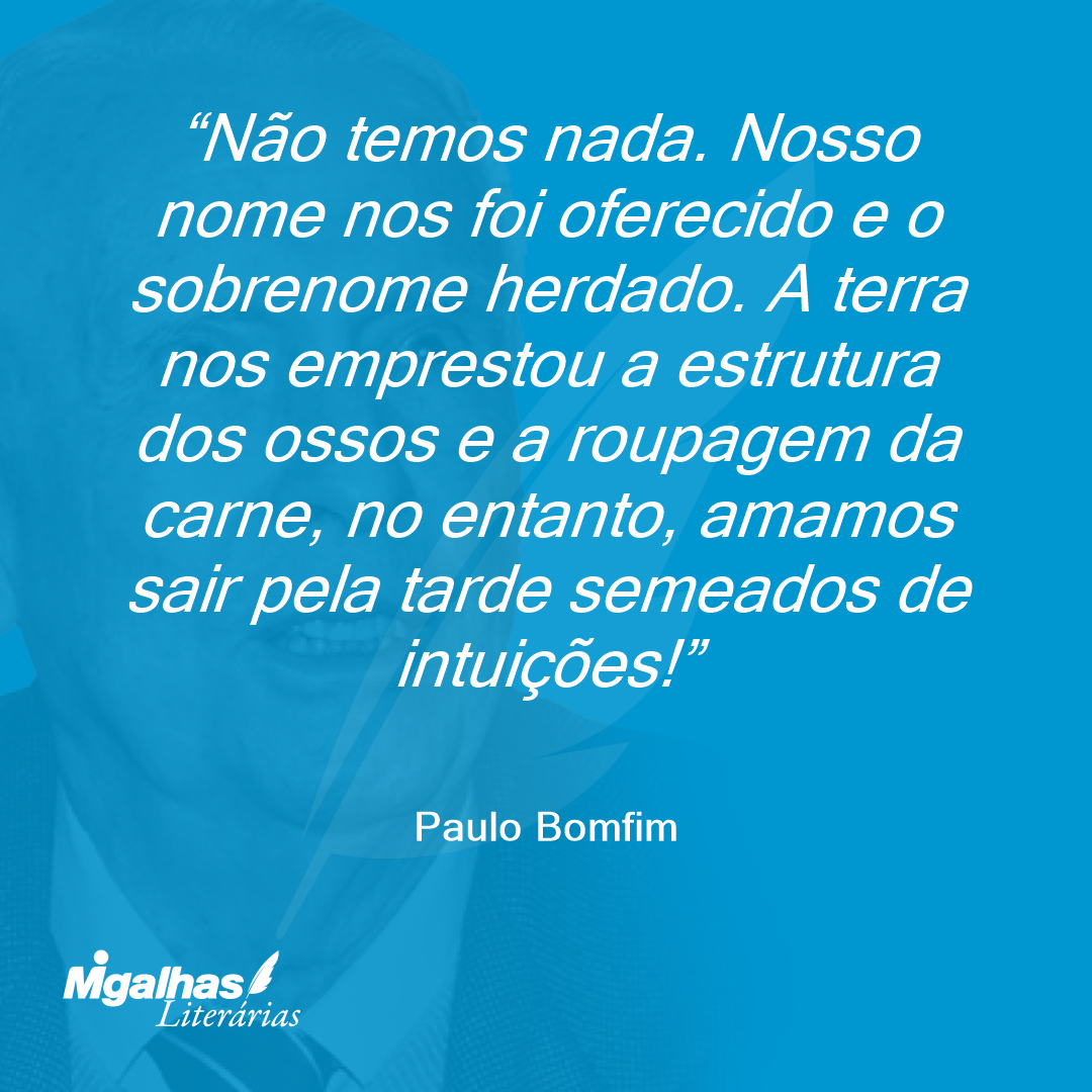 Não temos nada. Nosso nome nos foi oferecido e o sobrenome herdado. A terra nos emprestou a estrutura dos ossos e a roupagem da carne, no entanto, amamos sair pela tarde semeados de intuições!