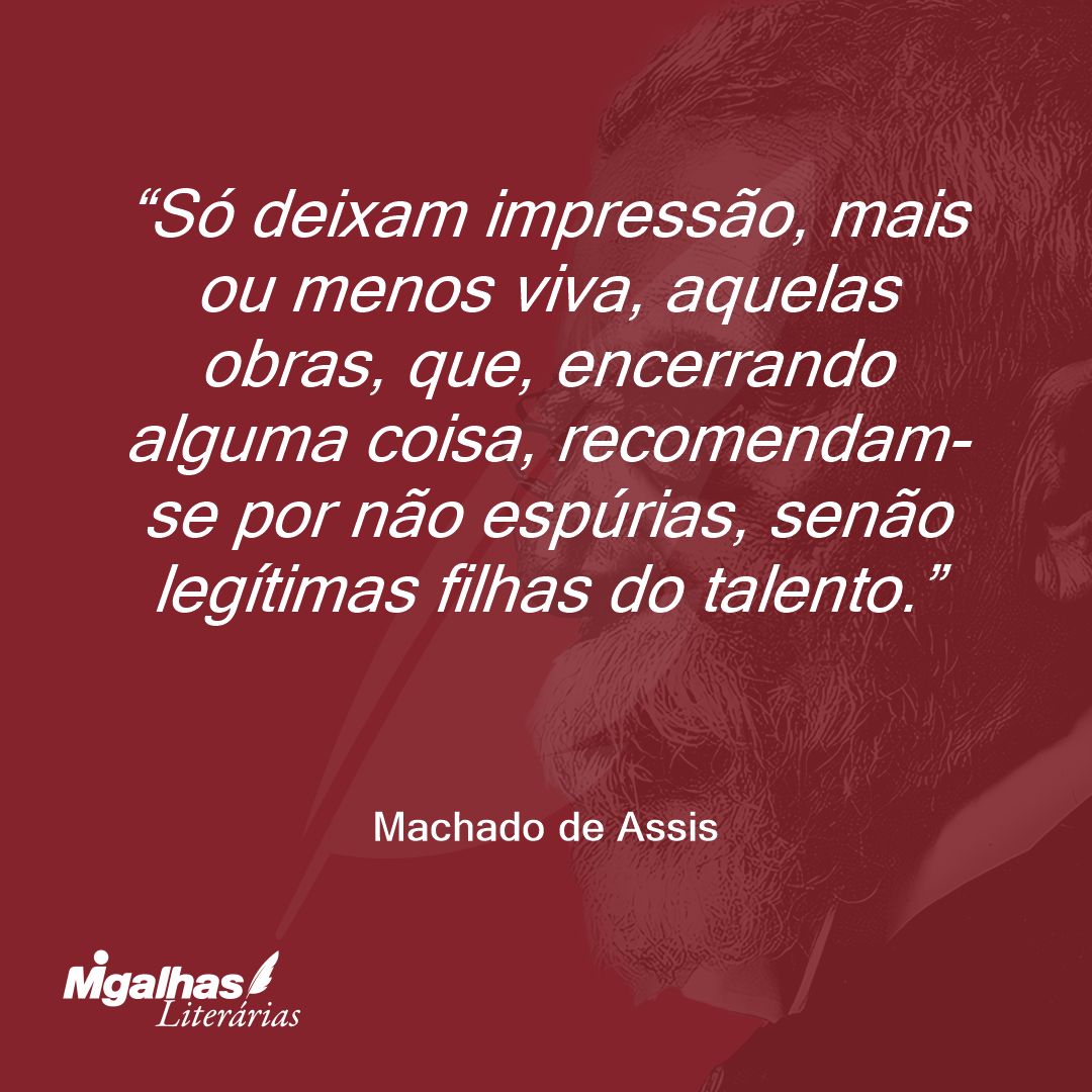 Só deixam impressão, mais ou menos viva, aquelas obras, que, encerrando alguma coisa, recomendam-se por não espúrias, senão legítimas filhas do talento.