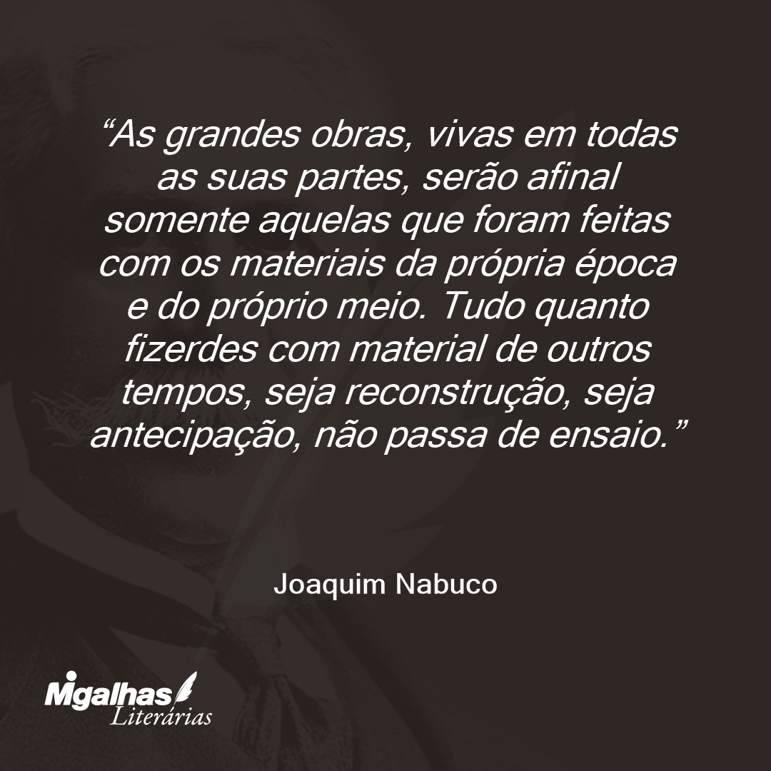 As grandes obras, vivas em todas as suas partes, serão afinal somente aquelas que foram feitas com os materiais da própria época e do próprio meio. Tudo quanto fizerdes com material de outros tempos, seja reconstrução, seja antecipação, não passa de ensaio.