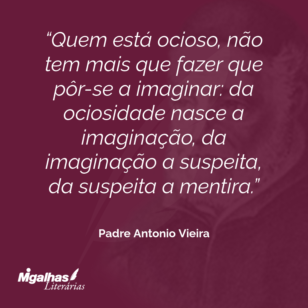 Quem está ocioso, não tem mais que fazer que pôr-se a imaginar: da ociosidade nasce a imaginação, da imaginação a suspeita, da suspeita a mentira.