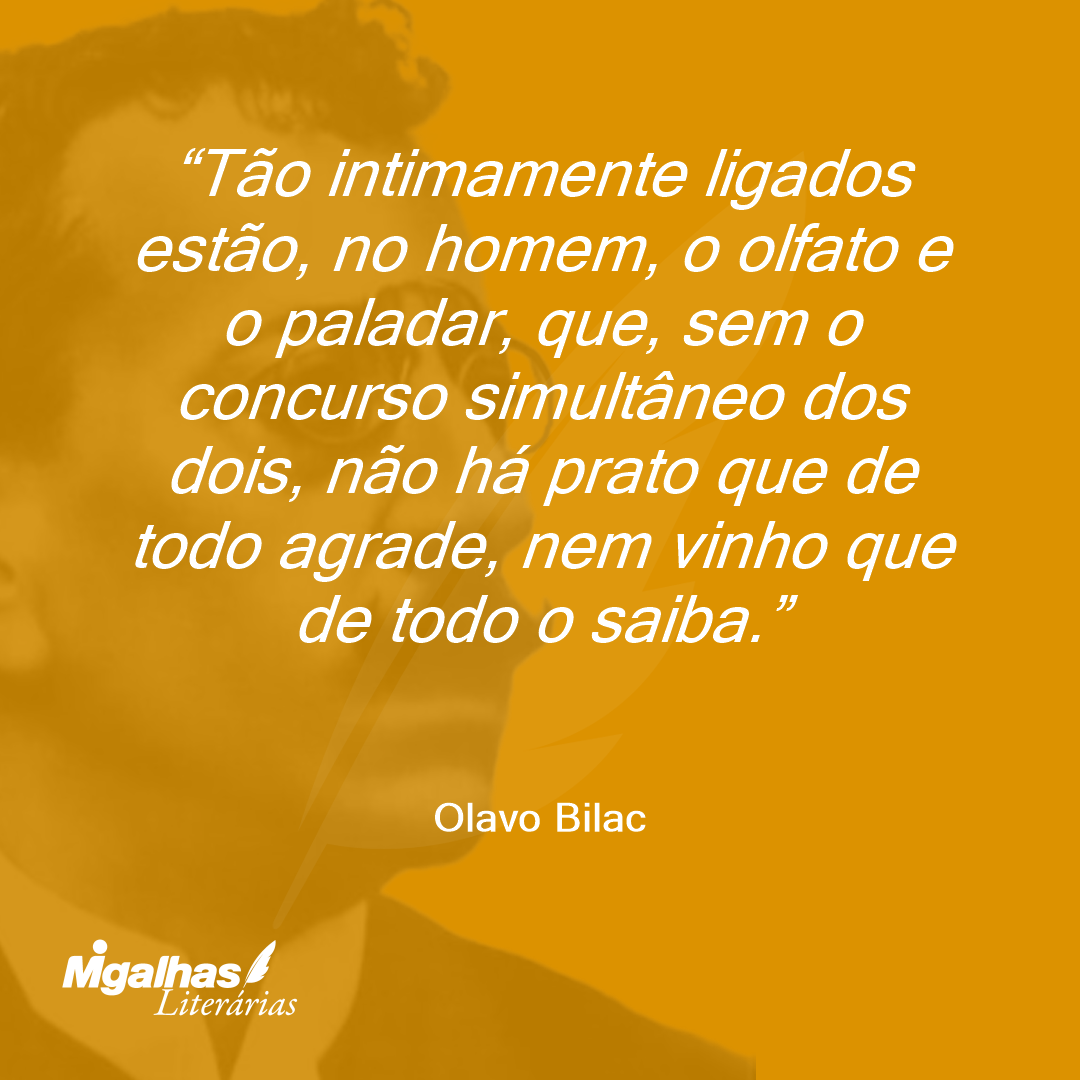 Tão intimamente ligados estão, no homem, o olfato e o paladar, que, sem o concurso simultâneo dos dois, não há prato que de todo agrade, nem vinho que de todo o saiba.