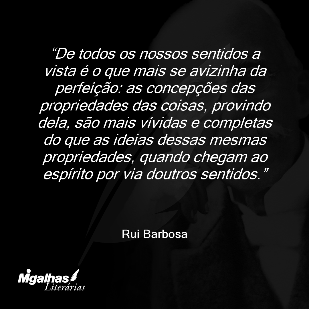 De todos os nossos sentidos a vista é o que mais se avizinha da perfeição: as concepções das propriedades das coisas, provindo dela, são mais vívidas e completas do que as ideias dessas mesmas propriedades, quando chegam ao espírito por via doutros sentidos.
