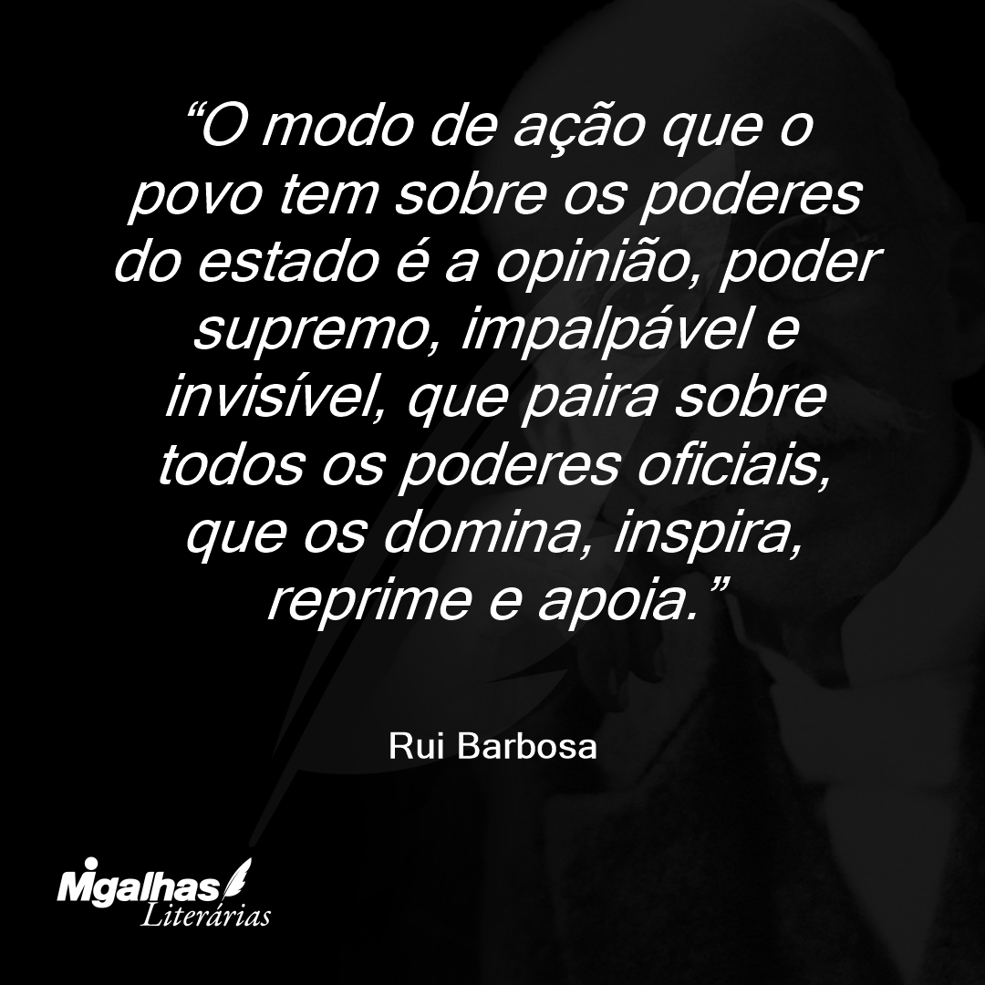 O modo de ação que o povo tem sobre os poderes do estado é a opinião, poder supremo, impalpável e invisível, que paira sobre todos os poderes oficiais, que os domina, inspira, reprime e apoia.